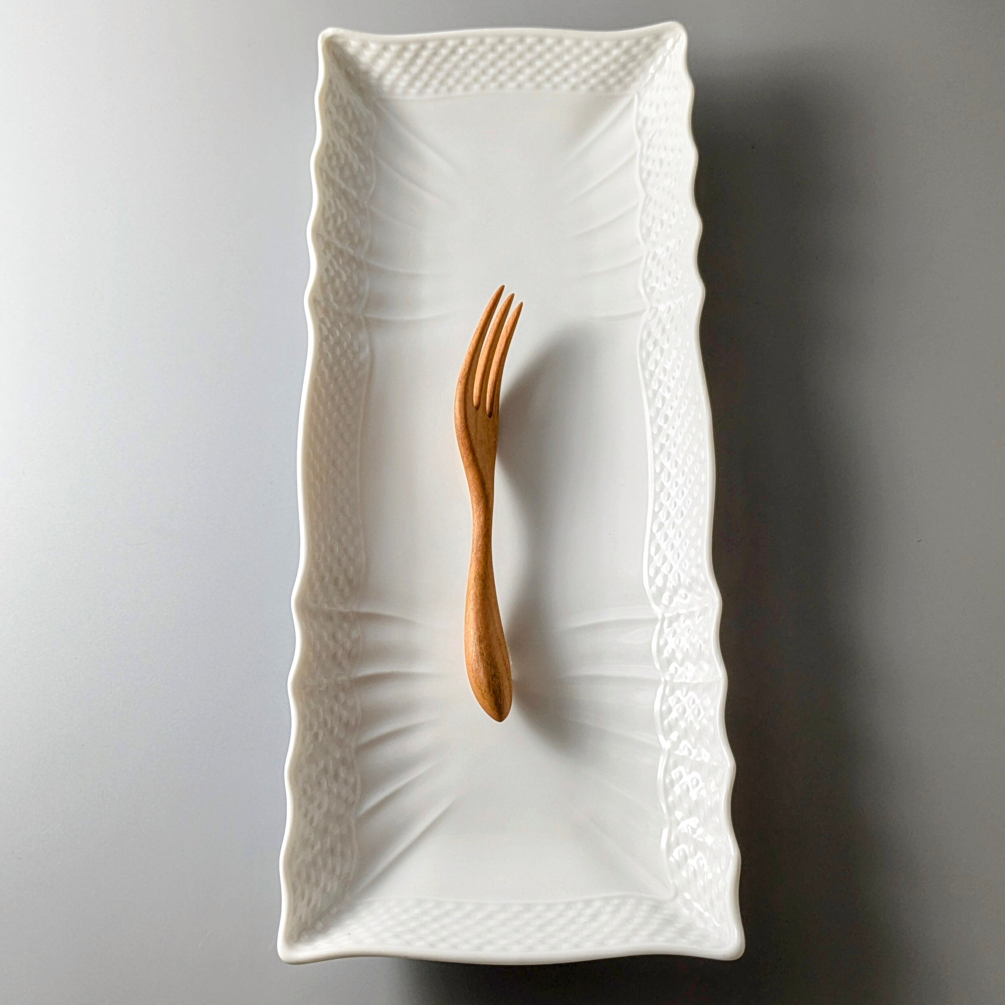 撥水塗料で天然色に仕上げた、サクラの木のベビーフォークです。